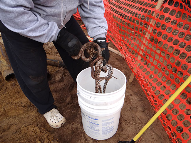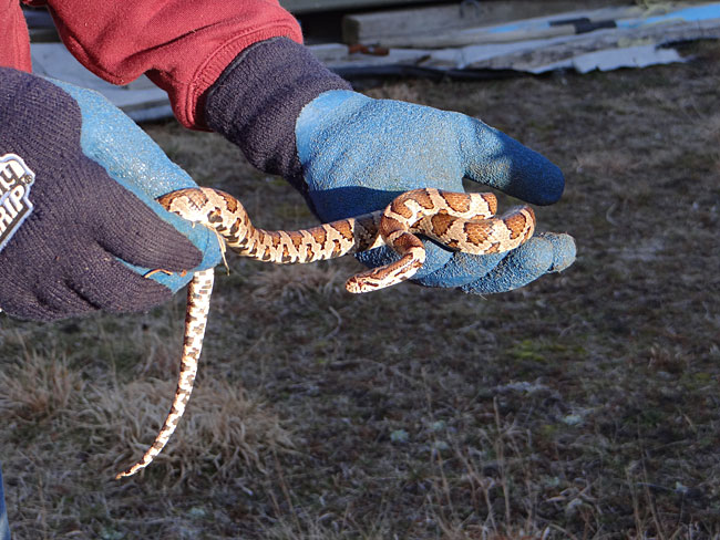 a ceramic pipe), we found a nest of milk and garter snakes bedded down for