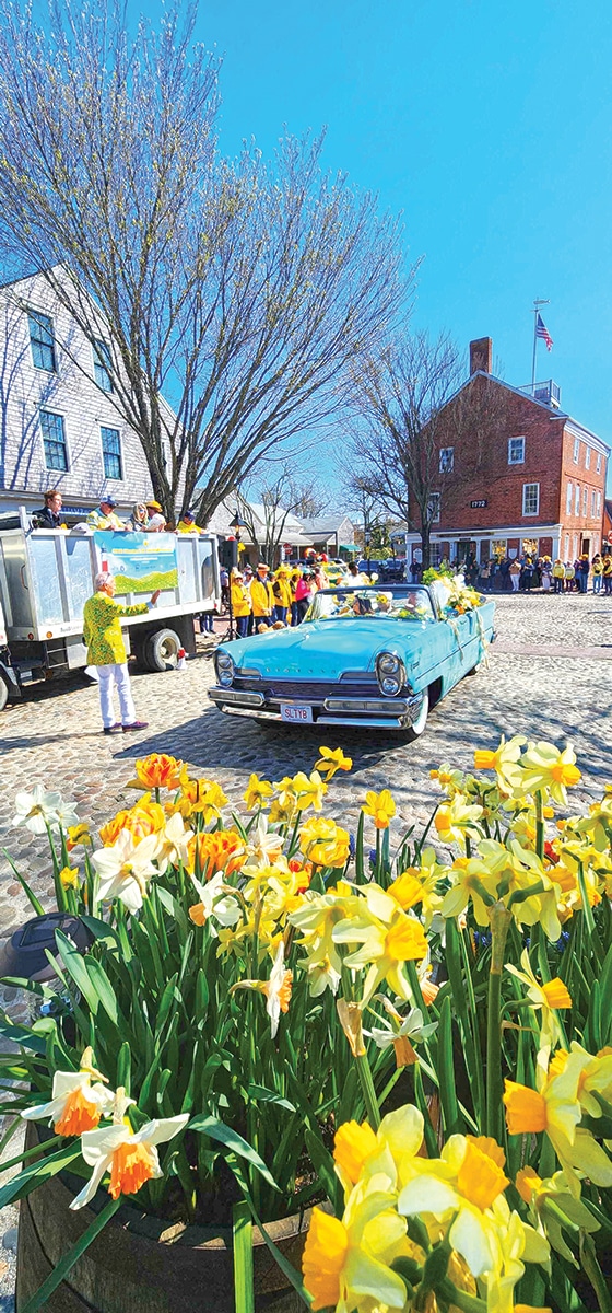 While the Daffodil Flower Show and the Antique Car Parade are the centerpieces of Daffodil Festival weekend, there are activities for all ages. Free events through the day on Saturday, April 25 at Children’s Beach include a photogenic Daffy Hat Pageant open to men, women, and children, a Children’s Bike Parade featuring bicycles, wagons, skateboards, and baby carriages adorned with daffodils, and NiSHA’s (Nantucket Safe Harbor for Animals) Daffy Dog Parade with awards for the most dapper canine. In between these events at Children’s Beach, the Nantucket Chamber of Commerce has arranged for a NanPuppets show and a Daffodil Magic Show. The Pine Woods Morris Men usually add music and dance to the fun at Children’s Beach and will perform at other locations around the island on Saturday.