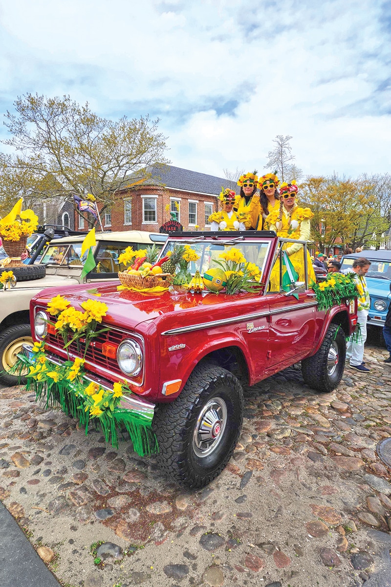The parade’s popularity grew quickly. By 1983, 80 antique cars had registered and 40 more crashed the parade, making the procession so long that the first car looped back around right behind the last. The following year, the Nantucket Island Chamber of Commerce, now in charge of Daffodil Festival activities (except for the Nantucket Garden Club’s Daffodil Show), had to cap the number of antique cars in the parade.